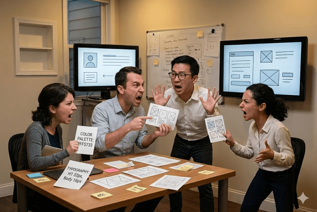 The absence of a single source of truth resulted in an inefficient and time-consuming workflow, forcing teams to enter endless, repetitive debates over basic design attributes (e.g., specific color values, typography sizing).