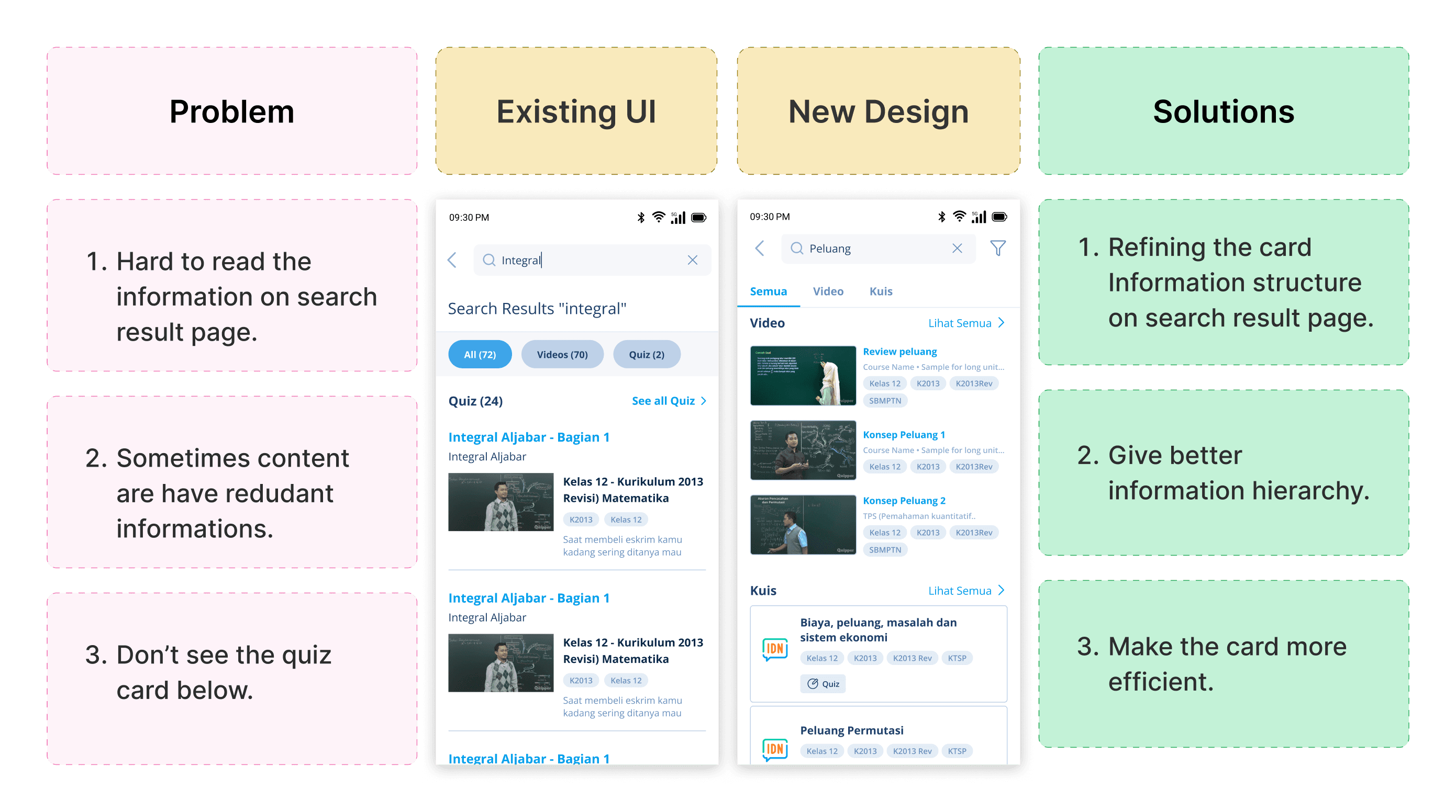 This project Increase the CTR from 32% to 68% of the content consumption from search funnel after implement the new design