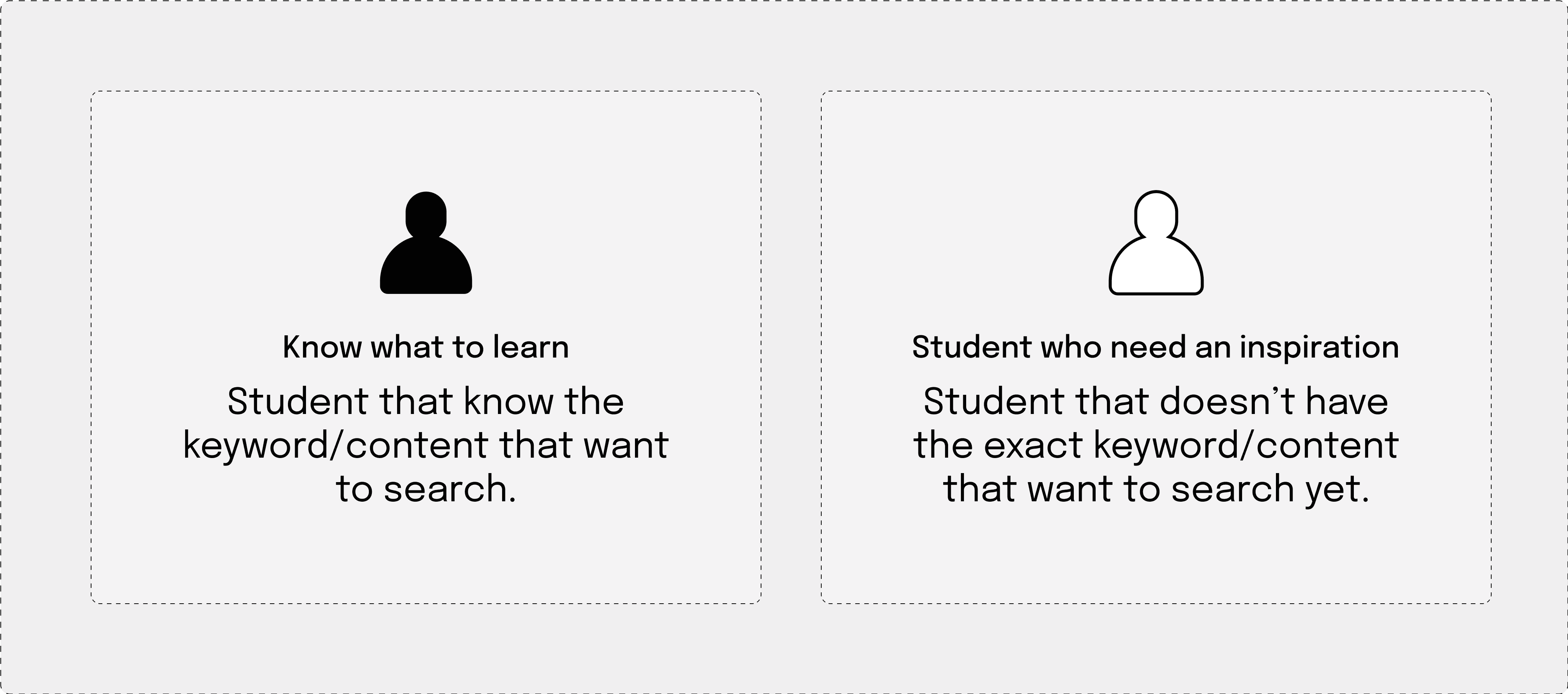 Following numerous user interviews, we identify two distinct user types during their process for searching the content.