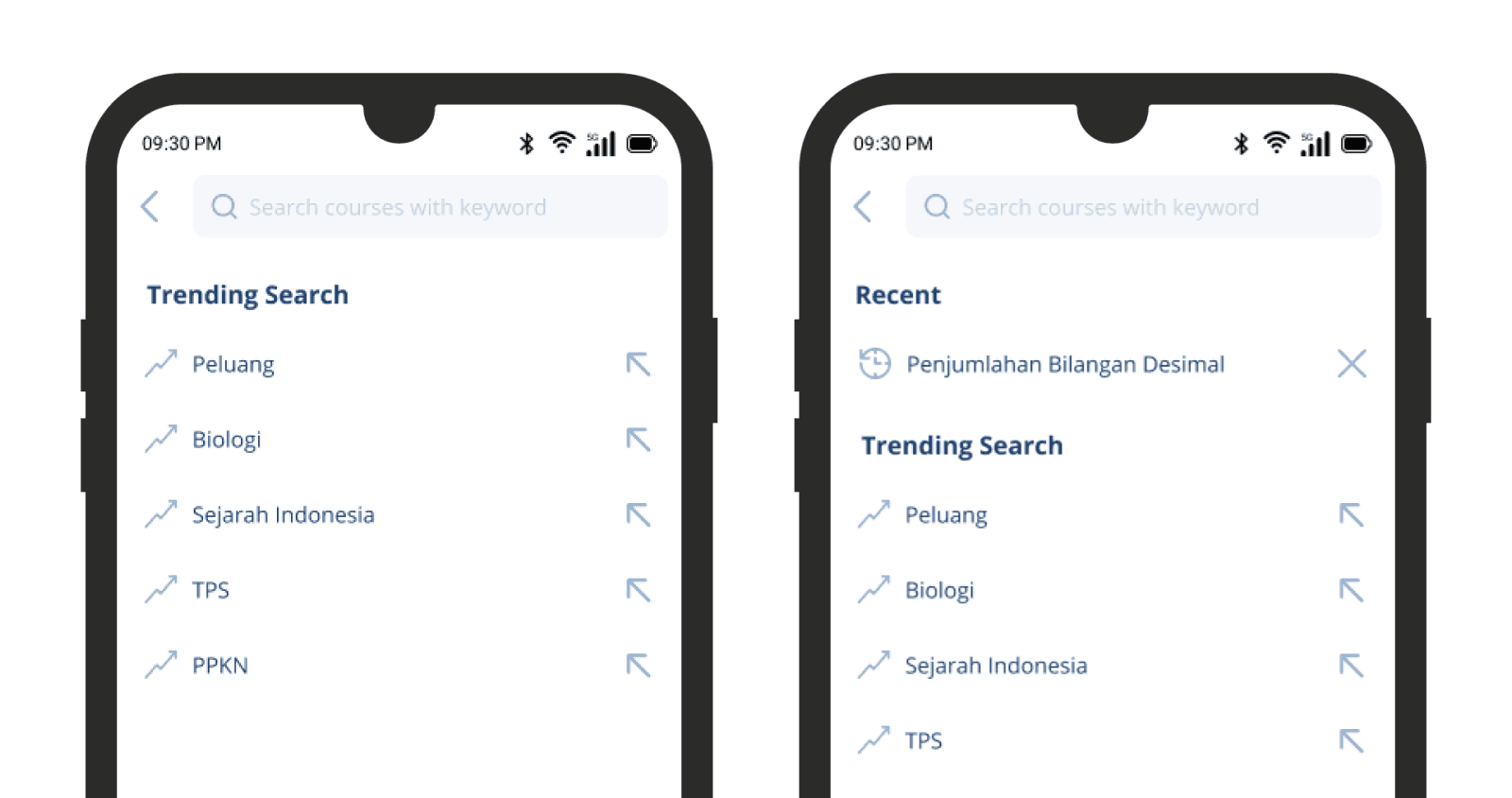 Showing an empty state when student tap the search field with recent keyword and without it.